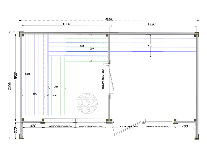 Saunę należy umieścić na stabilnym podłożu. Nie należy ustawiać jej bezpośrednio na ziemi. Zalecamy:
